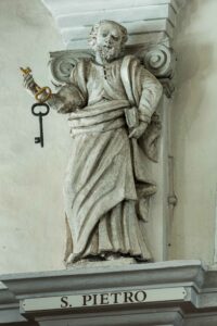della navata, due angeli reggicandelabro sull’arco trionfale, dodici figure di Apostoli, quasi a tutto tondo, lungo la navata. Sicuramente opera di abili stuccatori che ben conoscevano i materiali locali.